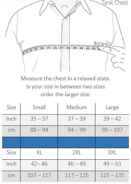 Measure your chest in a relaxed position. If you are between two sizes, choose the larger size for the best comfort.